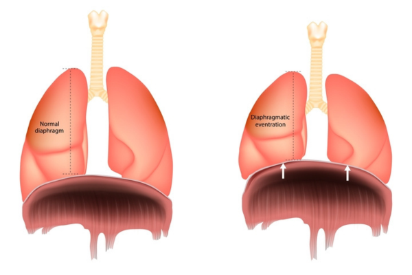 Η χειρουργική επέμβαση ονομάζεται πτύχωση του διαφράγματος. Φανταστείτε κάτι αντίστοιχο μιας χαλαρής ενδυμασίας την οποία μαζεύουμε με ραφές, όπως μια πλισέ φούστα. Έτσι, το διάφραγμα γίνεται πιο στιβαρό, όπως η μεμβράνη του τυμπάνου, χαμηλώνει προς την κοιλιά και μεγαλώνει ο χώρος του πνεύμονα, επιτρέποντας βαθύτερη αναπνοή. Οι επεμβάσεις αυτές πραγματοποιούνται πλέον με χρήση τηλεσκοπίου και μικρές οπές, προσφέροντας πιο σύγχρονη και λιγότερο τραυματική χειρουργική προσέγγιση.